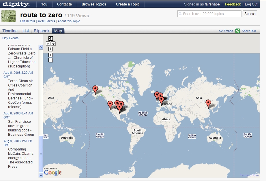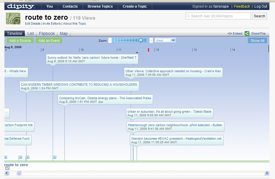 Over the last few days a number of people have asked for information on Dipity or the link to Route to Zero timeline I use in presentations, or have set up timelines such as Paul on his EvolutionExtranet and for be2camp.