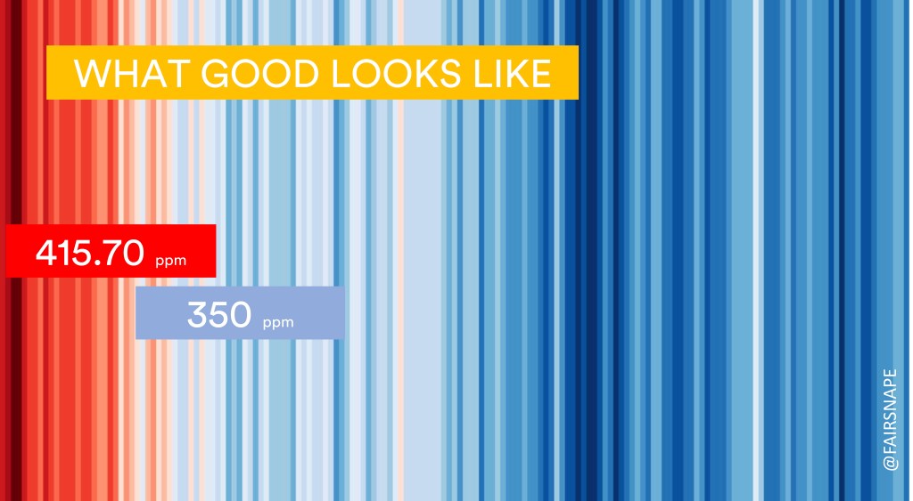 For Regenerative Climate– The warming stripes from Ed Hawkins visualising temperature differences have become a powerful image in understanding climate change and hence recognition of climate crisis. I have reversed the stripes to encourage discussion on regenerative approaches we need to reverse temperature increases – and get back to safe levels. (more)
