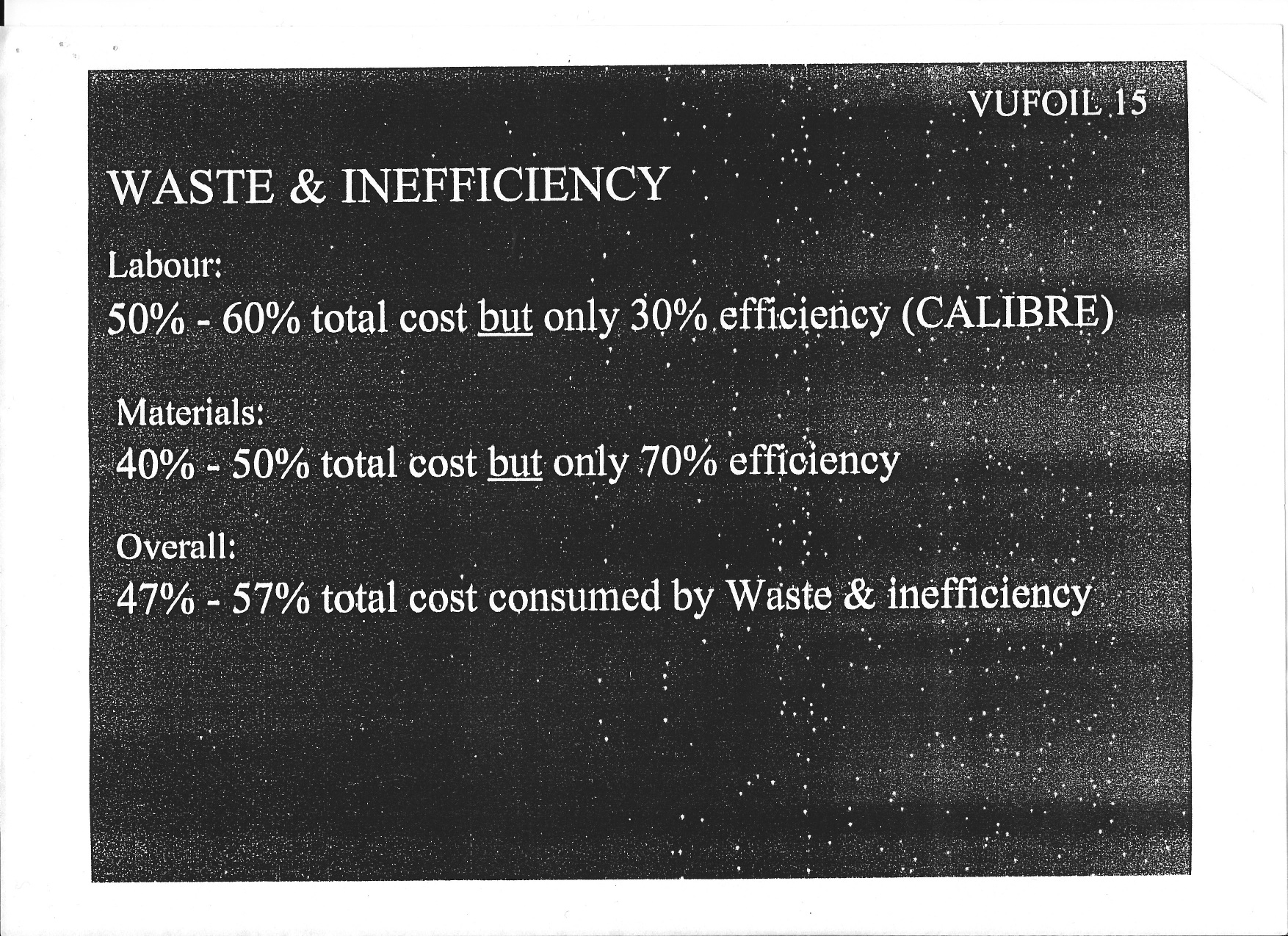 Since Building Down Barriers we have had many many strategies to improve efficiency, a recent (2006) study of labour efficiency showed a similar 30% of non productivity: